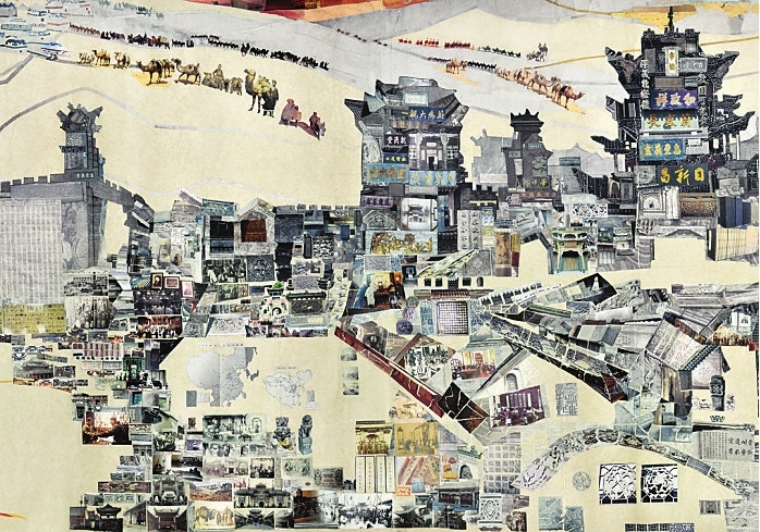 尤为值得注意的是“手撕拼贴”这一工艺细节。不同于机械切割的规整划一,手撕的边缘保留着质朴的手工感,仿佛历史本身就不是光滑平整的,而是由无数断裂与接续构成的有机整体。这种处理暗合了晋商五百年历程中的坎坷与辉煌——既有称雄海内的荣光,也有走西口的悲壮。