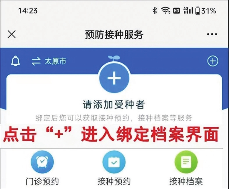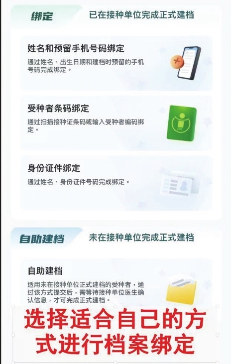已建档:点“+添加受种者”,输入姓名、身份证号、预留手机号绑定。