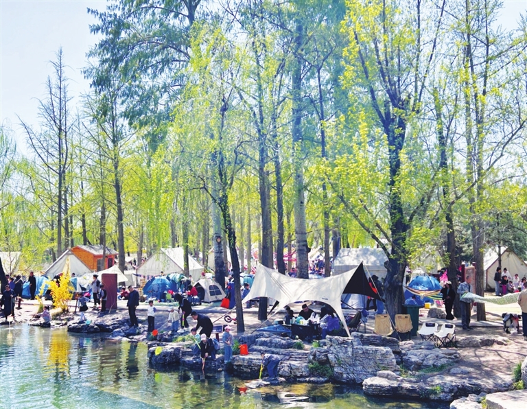 4月6日,市民张婷与几名好友走进晋祠公园的露营区,体验更亲近大自然的户外放松。她们赶到时,现场已经搭起了五颜六色的帐篷,孩子们奔跑嬉戏,家长们坐在帐篷内聊天,画面充满了野趣。张婷注意到,有人不仅支起了帐篷,还携带了折叠桌椅、天幕、野餐垫等设施,甚至还有人用小音箱播放着歌曲,营造出轻松愉悦的氛围。这处区域环境幽静,树绿了,花开了,小鸟在树枝上鸣叫,令人身心放松。