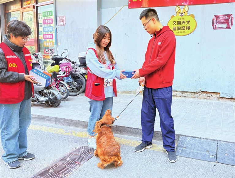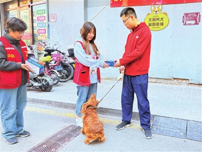 为激励居民积极践行文明养犬行为,网格员对现场主动牵绳、规范养犬的居民发放抽纸等实用小礼品,通过正向激励方式,带动更多养犬居民主动参与社区环境维护,共同营造整洁、有序、安全的居住环境。
