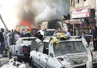 4月8日,在黎巴嫩首都贝鲁特,以色列发动的空袭导致汽车和建筑被毁(手机照片)。