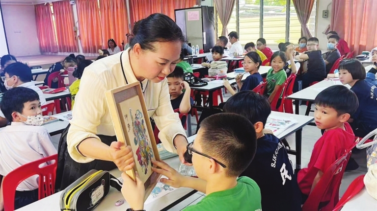 孩子们听得入了神,此时此刻,一幅1400多年前的北齐壁画,一匹来自中国古代神话中的神兽,让马来西亚的孩子们陷入思考……