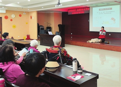 4月15日,文华苑社区与小店区红十字会在太原市老年公寓举办应急救护进社区专题讲座,重点讲解急性心肌梗死的识别与应急处置、心肺复苏操作要点以及AED使用方法。通过现场讲解和实操演练,提升居民应对突发状况的能力。 周利芳 摄