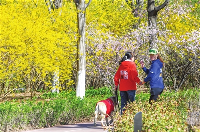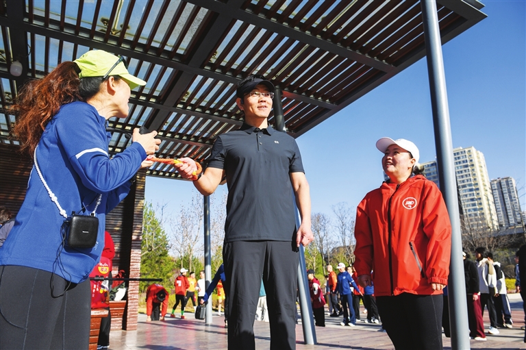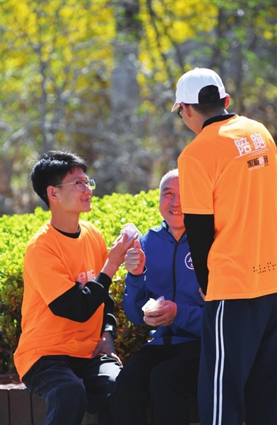 公园里春意盎然,志愿者们特意增加互动,让视障伙伴们用听觉、触觉感知春天。石远鸿陪着杨霞奔跑时,总能听到她兴奋地分享:“这里有鸟叫。”“那边有人吹葫芦丝。”“好像还有人踢毽子。”这些被健全人忽略的细微声响,是杨霞认识世界的桥梁。而石远鸿也在陪伴中收获了惊喜:“原来身边有这么多被我错过的美好。”